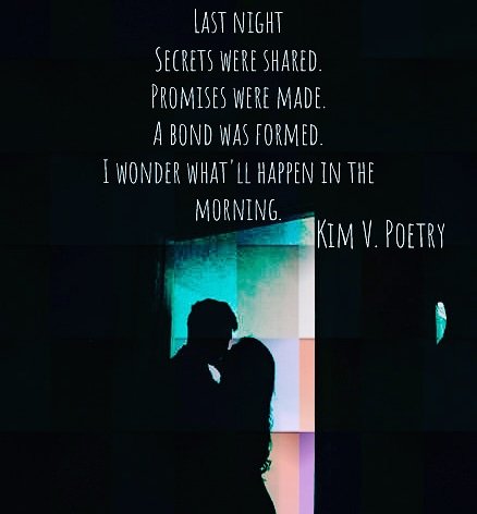 Last night Secrets were shared. Promises were made. A bond was formed. I wonder what’ll happen in the morning.