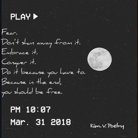 Do it because it hurts. Because it scares you. Do it because it might break your heart. Fear. Don’t shun away from it. Embrace it. Conquer it. Do it because you have to. Because in the end, you should be free.