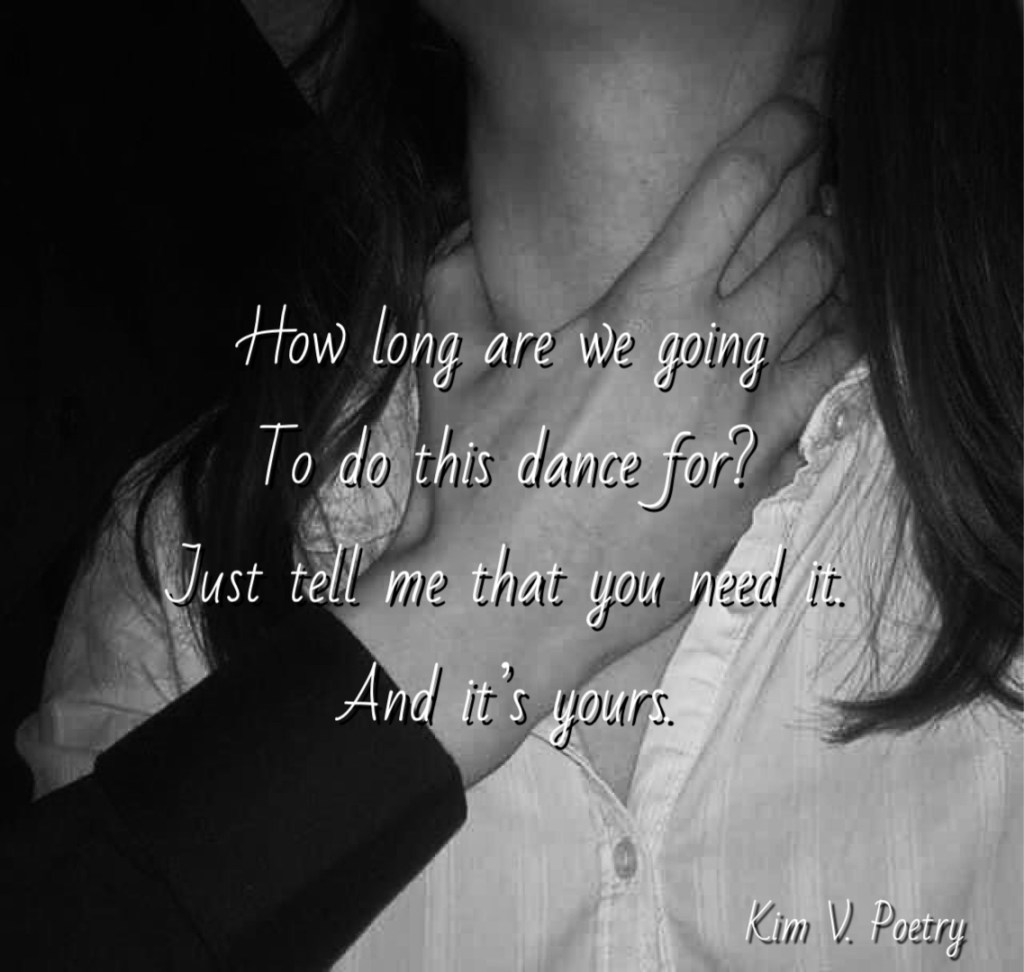 Your eyes on my lips, From across the room. You smile and look away. How long are we going To do this dance for? Just tell me that you need it. Tell me that you want it. And it’s yours.