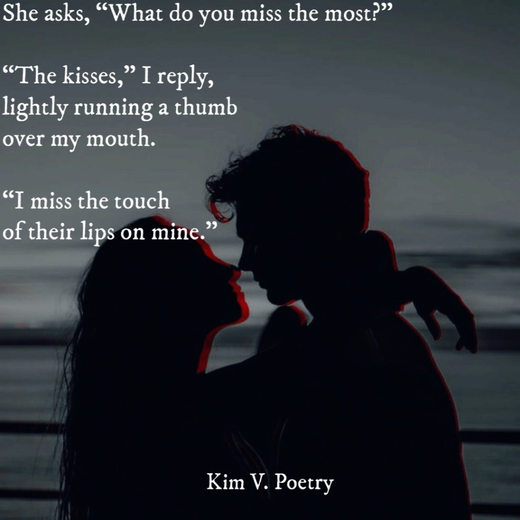 “The kisses,” I reply, lightly running a thumb over my mouth.