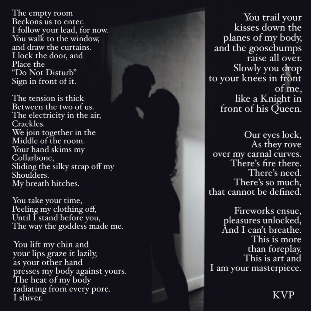 You trail your kisses down the planes of my body, and the goosebumps raise all over.