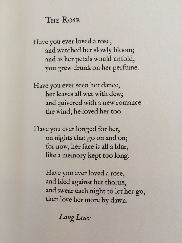 Before I go, I wanted to share my choice for the poem of the week. It’s another striking piece by the amazing Lang Leav. If you haven’t read their work, please do. You won’t be disappointed!