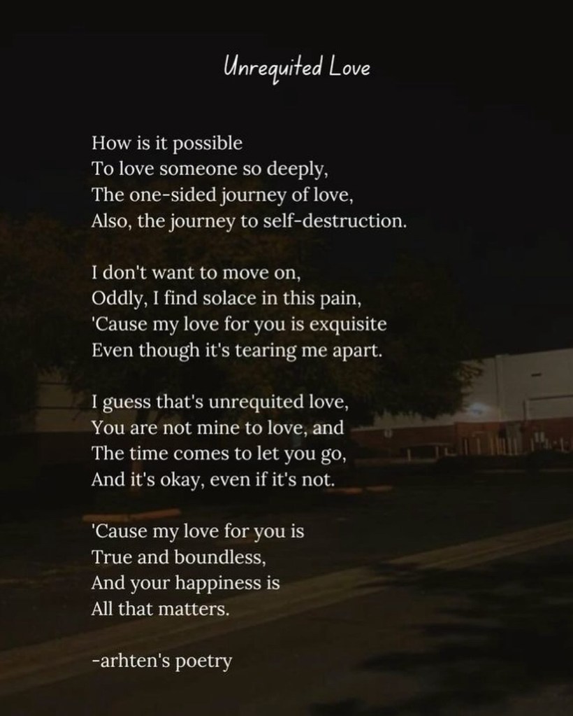 Before I go, I wanted to share my choice for the poem of the week. This piece, Arhten’s Poetry, is called “Unrequited Love,” it is as beautiful as it is haunting.