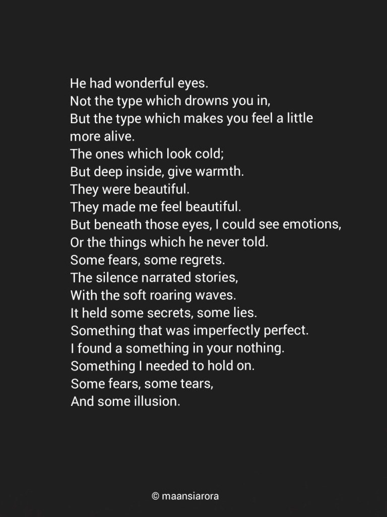 Before I go, I wanted to share my choice for the poem of the week. This piece by Maansi Arora is so otherworldly beautiful.