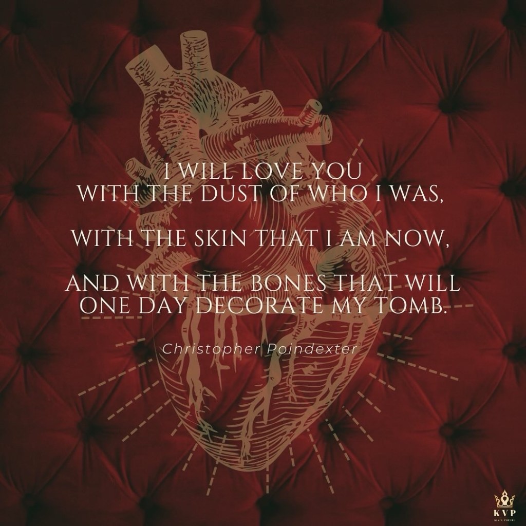 Before I go, I wanted to share my choice for the poem of the week. This piece is by Christopher Poindexter, and it is one of my favorite pieces.